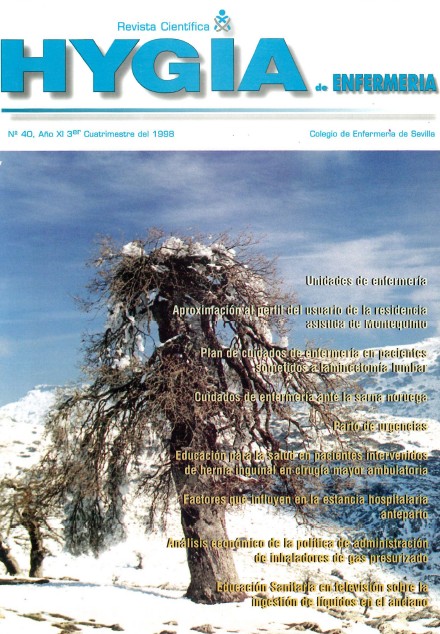 Revista científica «Hygia»Accede a la web propia de la Revista Científica Hygia para ver los ejemplares publicados desde 2022Publicaciones realizadas desde 1987 hasta 2021Ejemplares del año 2021108 de octubre de 2021107 3º Cuatrimestre de 2021106 2º Cuatrimestre de 2021105 1 º Cuatrimestre de 2021Ejemplares del año 2020104 3º Cuatrimestre de 2020103 1º Cuatrimestre de 2020Ejemplares del año 2019102 3º Cuatrimestre de 2019101 2º Cuatrimestre de 2019100 1º Cuatrimestre de 2019Ejemplares del año 201899 3º Cuatrimestre de 201898 2º Cuatrimestre de 201897 1º Cuatrimestre de 2018Ejemplares del año 201796 3º Cuatrimestre de 201795 2º Cuatrimestre de 201794 1º Cuatrimestre de 2017Ejemplares del año 201693 3º Cuatrimestre de 201692 2º Cuatrimestre de 201691 1º Cuatrimestre de 2016Ejemplares del año 201590 3º Cuatrimestre de 201589 2º Cuatrimestre de 201588 1º Cuatrimestre de 2015Ejemplares del año 201487 3º Cuatrimestre de 201486 2º Cuatrimestre de 201485 1º Cuatrimestre de 2014Ejemplares del año 201384 3º Cuatrimestre de 201383 2º Cuatrimestre de 201382 1º Cuatrimestre de 2013Ejemplares del año 201281 3º Cuatrimestre de 201280 2º Cuatrimestre de 201279 1º Cuatrimestre de 2012Ejemplares del año 201178 3º Cuatrimestre de 201177 2º Cuatrimestre de 201176 1º Cuatrimestre de 2011Ejemplares del año 201075 3º Cuatrimestre de 201074 2º Cuatrimestre de 201073 1º Cuatrimestre de 2010Ejemplares del año 200972 3º Cuatrimestre de 200971 2º Cuatrimestre de 200970 1º Cuatrimestre de 2009Ejemplares del año 200869 3º Cuatrimestre de 200868 1º y 2º Cuatrimestre de 2008Ejemplares del año 200767 3º Cuatrimestre de 200766 2º Cuatrimestre de 200765 1º Cuatrimestre de 2007Ejemplares del año 200664 3º Cuatrimestre de 200663 2º Cuatrimestre de 200662 1º Cuatrimestre de 2006Ejemplares del año 200561 3º Cuatrimestre de 200560 2º Cuatrimestre de 200559 1º Cuatrimestre de 2005Ejemplares del año 200458 3º Cuatrimestre de 200457 2º Cuatrimestre de 200456 1º Cuatrimestre de 2004Ejemplares del año 200355 3º Cuatrimestre de 200354 2º Cuatrimestre de 200353 1º Cuatrimestre de 2003Ejemplares del año 200252 3º Cuatrimestre de 200251 2º Cuatrimestre de 200250 1º Cuatrimestre de 2002Ejemplares del año 200149 3º Cuatrimestre de 200148 2º Cuatrimestre de 200147 1º Cuatrimestre de 2001Ejemplares del año 200046 3º Cuatrimestre de 200045 2º Cuatrimestre de 200044 1º Cuatrimestre de 2000Ejemplares del año 199943 3º Cuatrimestre de 199942 2º Cuatrimestre de 199941 1º Cuatrimestre de 1999Ejemplares del año 199840 3º Cuatrimestre de 199839 2º Cuatrimestre de 199838 1º Cuatrimestre de 1998Ejemplares del año 199737 3º Cuatrimestre de 199736 2º Cuatrimestre de 199735 1º Cuatrimestre de 1997Ejemplares del año 199634 3º Cuatrimestre de 199633 2º Cuatrimestre de 199632 1º Cuatrimestre de 1996Ejemplares del año 199531 3º Cuatrimestre de 199530 2º Cuatrimestre de 199529 1º Cuatrimestre de 1995Ejemplares del año 1994Hygia nº 28 de 1995hygia nº 27 de 1995Ejemplares del año 199326 4º Trimestre de 199325 3º Trimestre de 199324 2º Trimestre de 199323 1º Trimestre de 1993Ejemplares del año 199222 4º Trimestre de 199221 3º Trimestre de 199220 2º Trimestre de 199219 1º Trimestre de 1992Ejemplares del año 199118 4º Trimestre de 199117 3º Trimestre de 199116 2º Trimestre de 199115 1º Trimestre de 1991Ejemplares del año 199014 4º Trimestre de 199013 3º Trimestre de 199012 2º Trimestre de 199011 1º Trimestre de 1990Ejemplares del año 198910 4º Trimestre de 19899 3º Trimestre de 19898 2º Trimestre de 19897 1º Trimestre de 1989Ejemplares del año 19886 4º Trimestre de 19885 3º Trimestre de 19884 2º Trimestre de 19883 1º Trimestre de 1988Ejemplares del año 19872 4º Trimestre de 19871 3º Trimestre de 1987Hygia nº 0 Suplemento especial de 1987