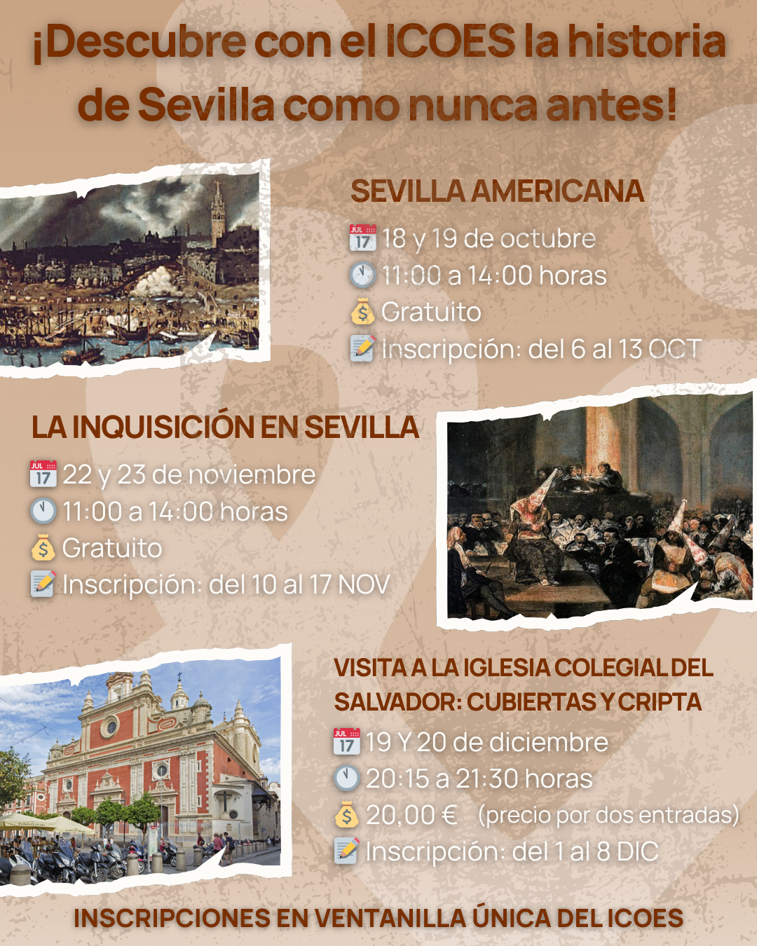 El ICOES organiza una visita para descubrir las cubiertas de la Catedral de Sevilla, los días 20 y 21 de septiembre 11 de septiembre, 2025 El ICOES organiza una visita donde descubrirás la cubiertas de la Catedral de Sevilla, los días 20 y 21 de septiembre. De la mano de la historiadora Aurora Ortega realizaremos …