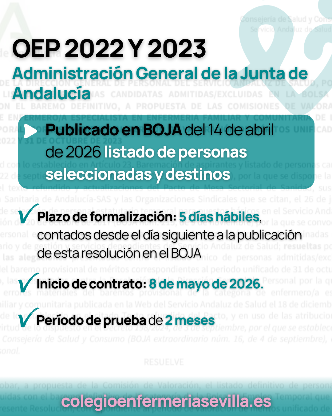 El BOJA nº 70 de 14 de abril de 2026 ha publicado: Resolución de 9 de abril de 2026, de la Dirección General de Recursos Humanos y Función Pública, por la que se aprueba la relación definitiva con las personas seleccionadas y expresión de los destinos adjudicados en el concurso-oposición para el acceso a la …