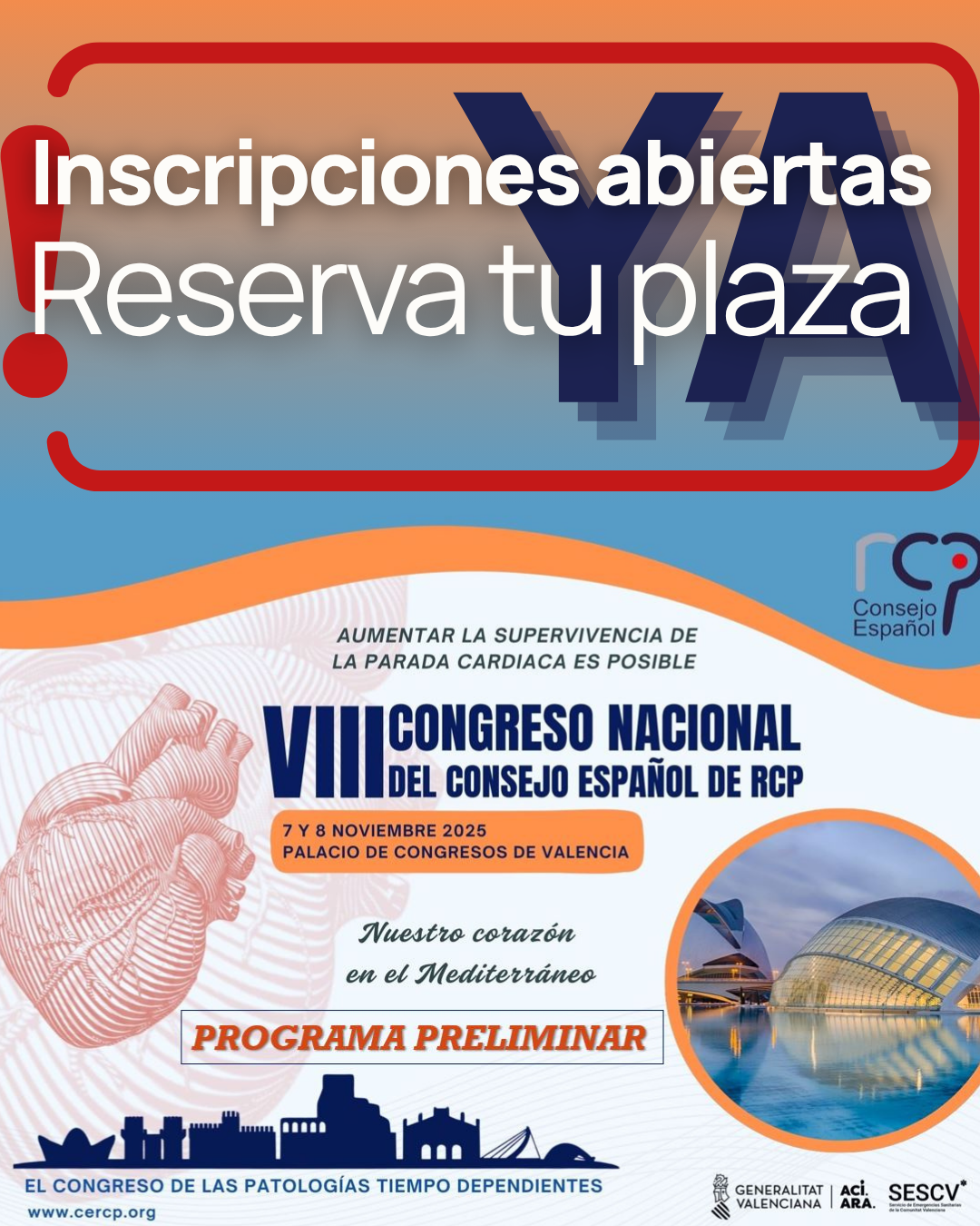 29 de julio, 2025 El VIII Congreso del Consejo Español de Resucitación Cardio Pulmonar (CERCP), se celebra este año en el marco incomparable de la ciudad de Valencia, bajo el lema: “El Congreso de las Patologías Tiempo-Dependientes”. Los plazos están abiertos para: 1. Inscribirse al congreso en las distintas modalidades habilitadas al efecto. Os recordamos que este …