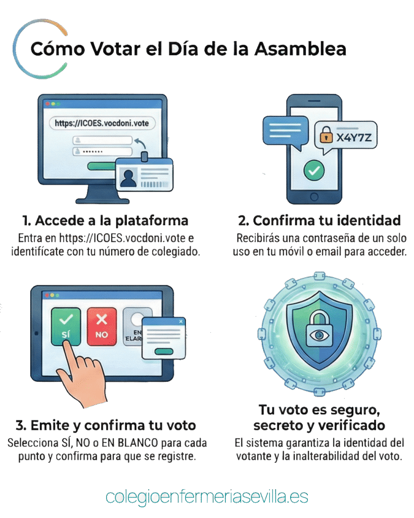 En aplicación de los nuevos Estatutos del ICOES el VOTO será TELEMÁTICO (sólo se podrá votar de manera electrónica). Además, el voto delegado estará disponible.