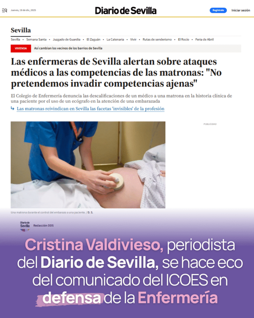 Inicio Sala de prensa Cristina Valdivieso, periodista del Diario de Sevilla, se hace eco del comunicado del ICOES en defensa de la Enfermería