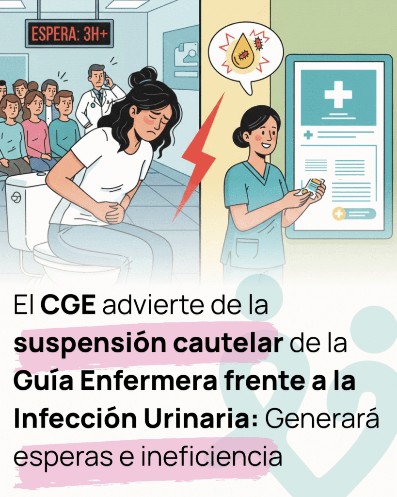 Inicio Sala de prensa El CGE advierte de la suspensión cautelar de la Guía Enfermera frente a la Infección Urinaria: Generará esperas e ineficiencia