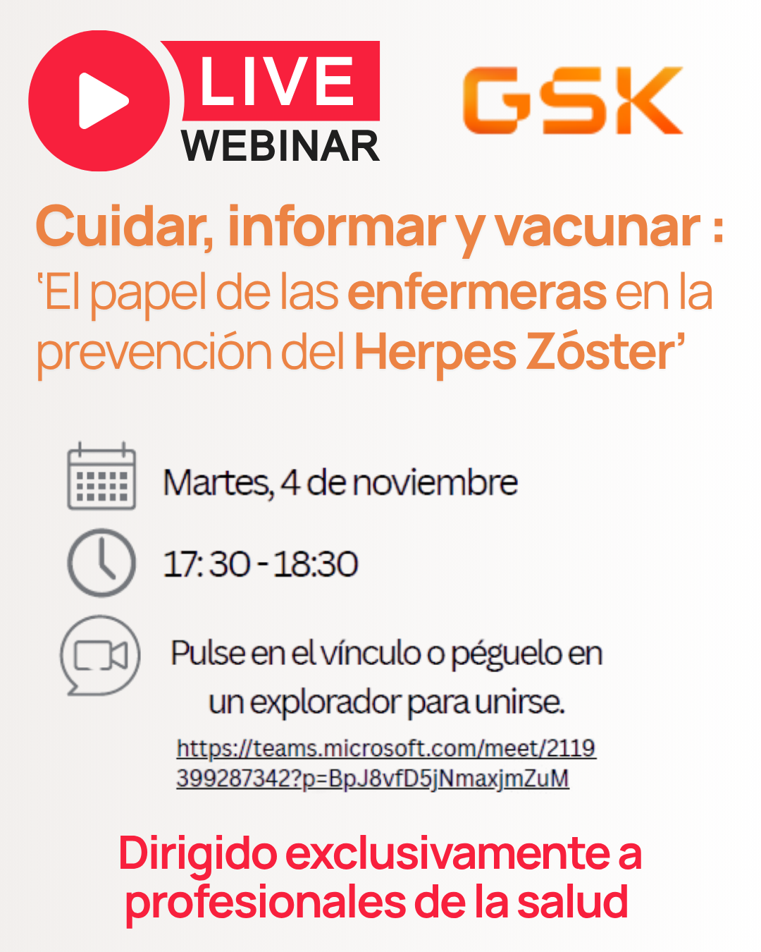 31 de octubre, 2025 El próximo martes 4 de noviembre, de 17:30 a 18:30, se llevará a cabo una reunión científica online dirigida a profesionales de la salud, centrada en el papel fundamental de las enfermeras en la prevención del Herpes Zóster. Este evento, organizado en un entorno especializado, busca informar y capacitar sobre las …