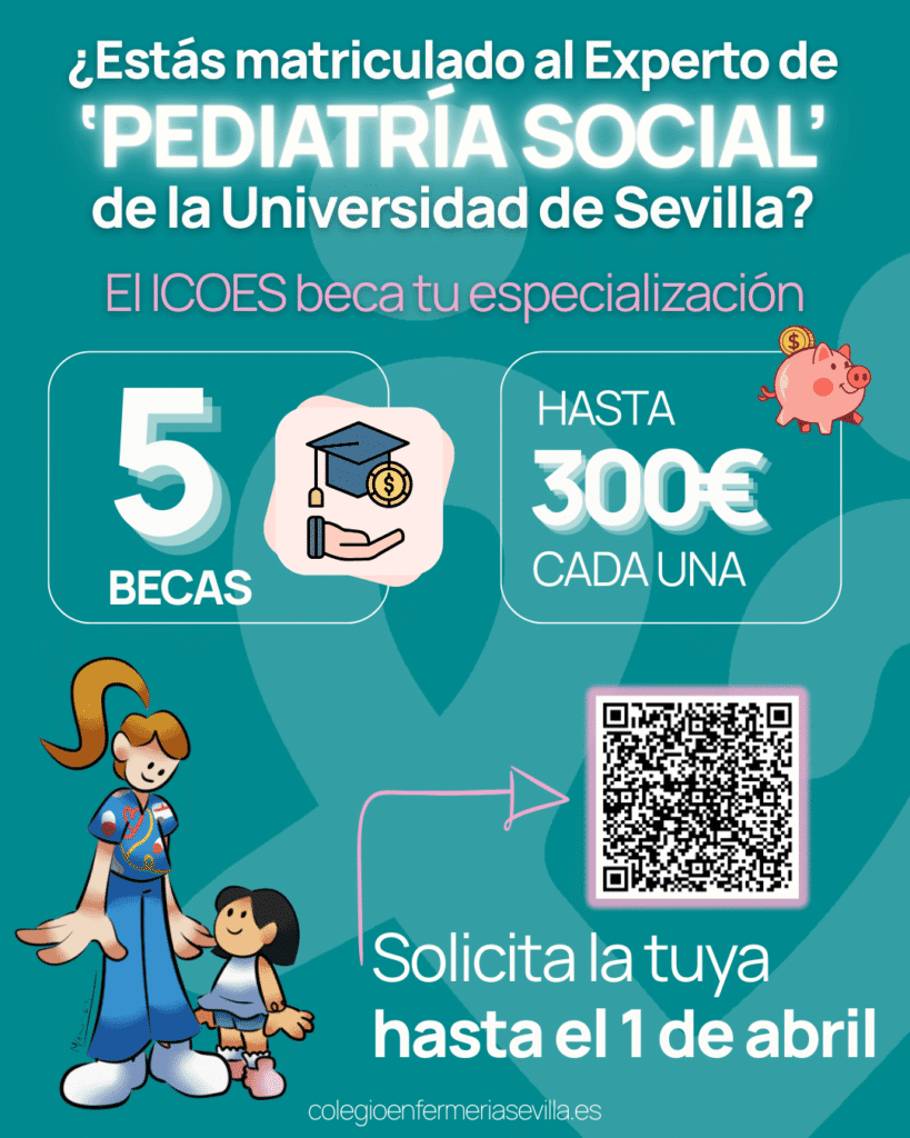 El Ilustre Colegio Oficial de Enfermería de Sevilla apuesta por la formación especializada de sus profesionales financiando parte de la matrícula del curso ‘Pediatría Social’, organizado por la Universidad de Sevilla (https://cfp.us.es/cursos/oferta-2025/TP/pediatria-social/7169)