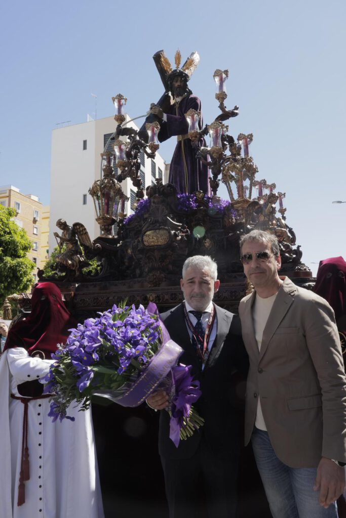 El presidente del ICOES Víctor Bohórquez, acompañado por Jorge Romero, Inmaculada Alonso, Paco Ortiz y Marta Lima, entre otros enfermeros y responsables sanitarios, han entregado este Martes Santo de 2026 las ofrendas florales cargadas de iris morados, claveles rojos y claveles blancos al paso de Nuestro Padre Jesús de la Humildad, al paso del Santísimo Cristo del Desamparo y Abandono, y al paso de Nuestra Señora de los Dolores, en las inmediaciones de la sede profesional.