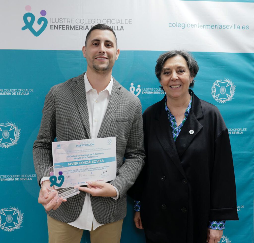 Javier González Vela, enfermero en el Hospital Costa del Sol (Málaga), ha logrado el Primer Premio ICOES Mejor Proyecto Investigador Novel, dotado con 5.500 euros, por el trabajo titulado ‘Cateterismo de esfuerzo en esclerosis sistémica: una visión hemodinámica, emocional y humanizada del cuidado’. Este estudio sitúa a la enfermera como figura central en la generación de conocimiento y en la evaluación integral del procedimiento, contribuyendo al diseño de cuidados más eficaces. La implicación práctica reside en la mejora del acompañamiento emocional del paciente y la optimización de circuitos asistenciales en pruebas invasivas, consolidando así una atención enfermera más segura, humana y basada en la evidencia.