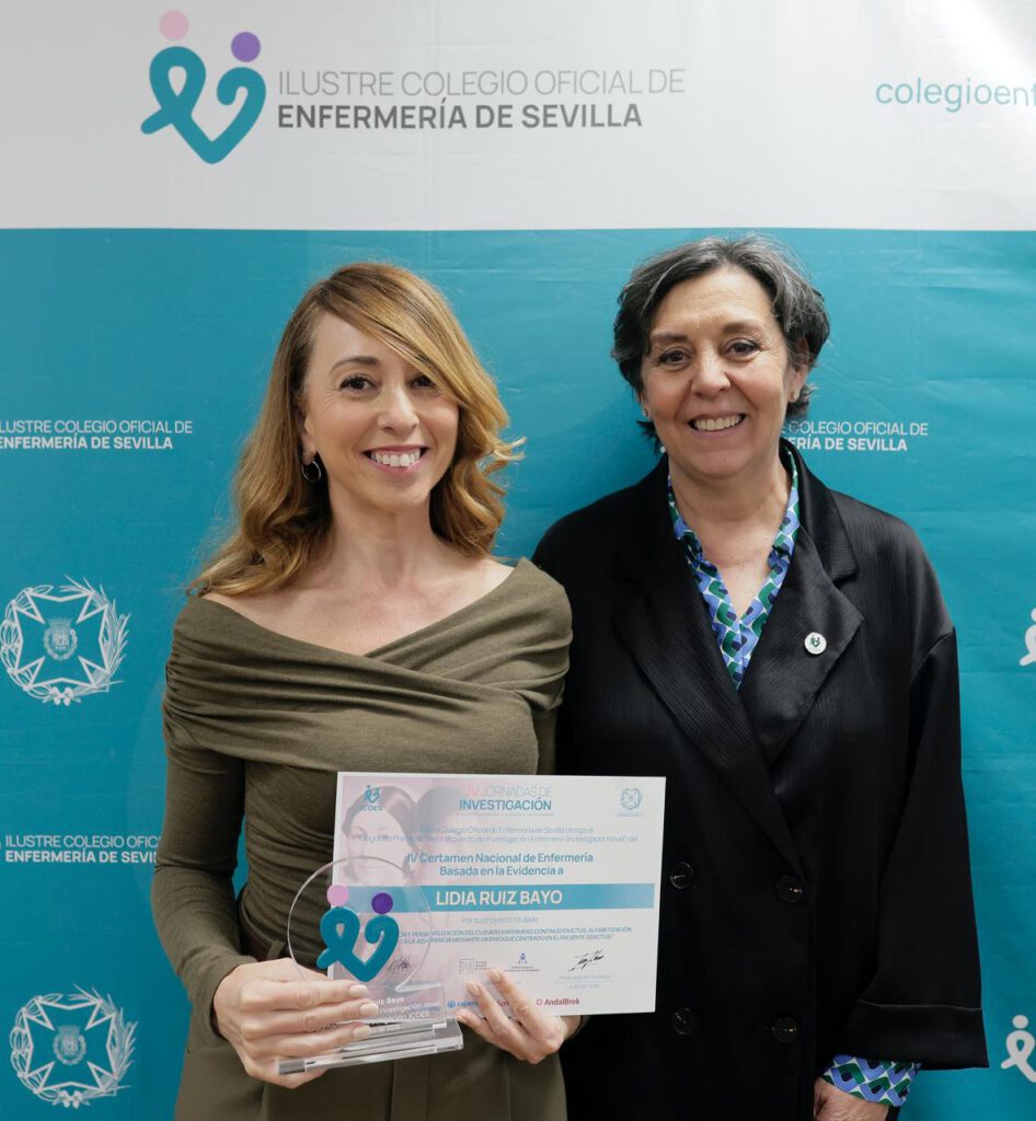Lidia Ruiz Bayo, enfermera responsable de Cuidados UGC de Neurología y Neurofisiología Clínica en el Hospital Universitario Virgen Macarena (Sevilla), recibe el Segundo Premio Mejor Proyecto Investigador Novel dotado con 5.500 euros por el trabajo ‘Digitalización y personalización del cuidado enfermero continuo en ictus: Alfabetización y apoyo a la adherencia mediante un enfoque centrado en el paciente (EDictus)’. Se trata de una investigación multidisciplinar orientada al diseño, desarrollo y evaluación de un producto mínimo viable (MVP) de una solución digital personalizada (una app) que apoye el cuidado enfermero continuo en personas que han sufrido un ictus. El objetivo en EDictus es mejorar la alfabetización en salud, el autocuidado y la adherencia a tratamientos y recomendaciones tras el alta hospitalaria.