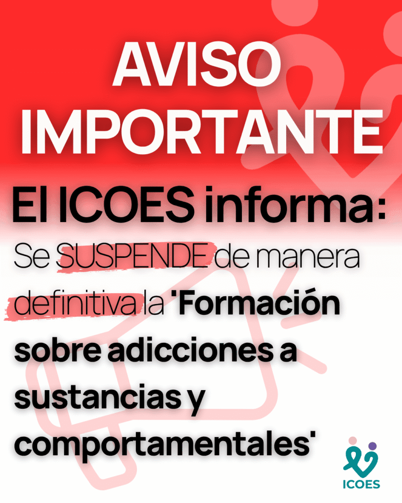 Inicio Sala de prensa El ICOES suspende la ‘Formación sobre adicciones a sustancias y comportamentales’