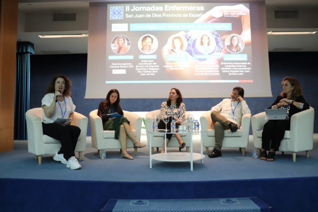 Por otro lado, la convivencia entre la innovación tecnológica y el enfoque humano presente en el ADN de la enfermería ha sido el tema de la segunda mesa, Tecnología con Alma: el arte de acompañar. En ella se han compartido iniciativas de acompañamiento espiritual, programas digitales de educación en salud mental, estrategias para transformar el acompañamiento y hacer presentes los sentimientos de pacientes y familias, y experiencias de hospitalidad inmersiva que combinan tecnología y cuidado para aliviar, acompañar y transformar la experiencia sanitaria.