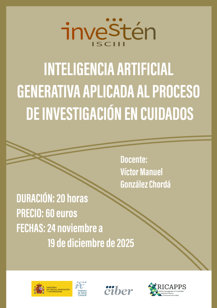 INVESTÉN, en colaboración con el Consejo Andaluz de Enfermería, lanza para l@s colegiad@s del ICOES dos nuevas actividades formativas que comenzarán el 24 de noviembre: ‘Estadística Descriptiva y Contraste de Hipótesis’, e ‘Inteligencia Artificial Generativa en Investigación en Cuidados’