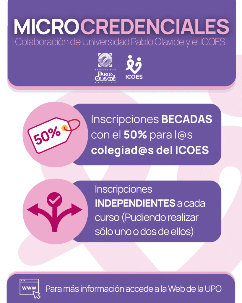Estas microcredenciales que comienzan en enero de 2026, ofrece becas del 50% para colegiad@s en Sevilla y permite cursar módulos de forma independiente o completar el programa para obtener el título de Experto Universitario