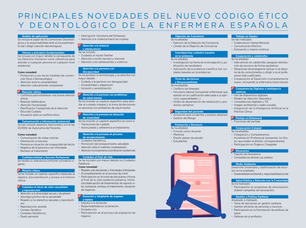 El nuevo texto consta de 108 artículos, divididos en 27 áreas temáticas, “con el objetivo de garantizar una práctica ética enfermera responsable, con eficacia, eficiencia y efectividad, orientada al cuidado digno de las personas con el fin de alcanzar la excelencia en el ejercicio profesional”, tal y como señala su preámbulo.