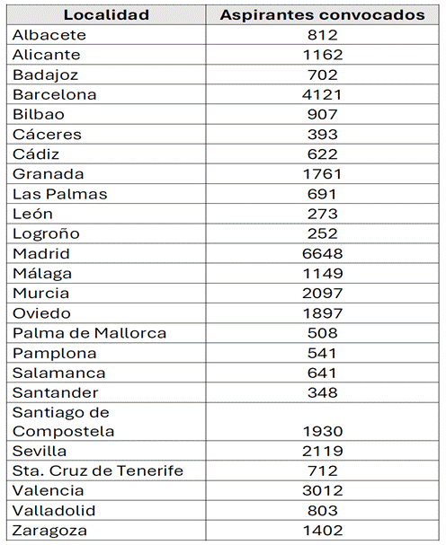 • Las personas aspirantes deberán consultar previamente la mesa y centro de examen asignados en la web del Ministerio, ya que no se permitirán cambios de ubicación sin autorización.