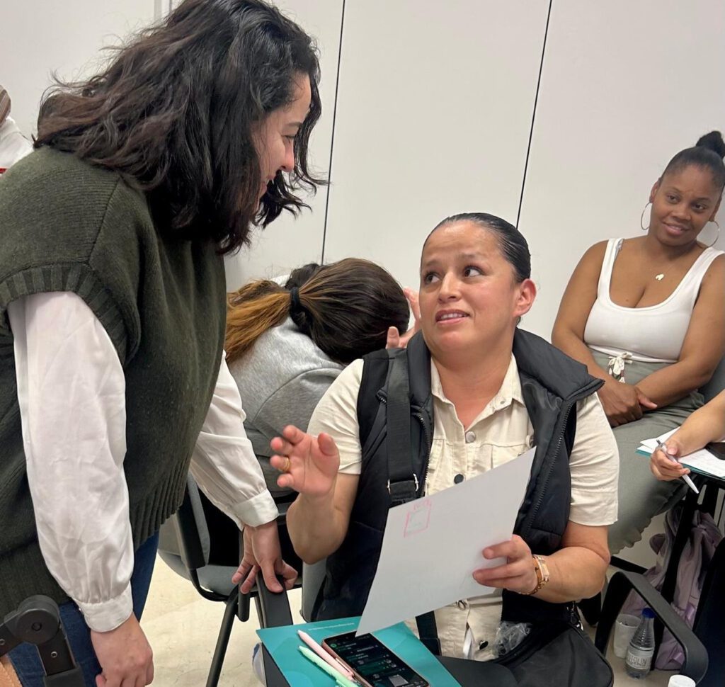 La matrona Marta Navarro del Valle, voluntaria en la ONG Solidaridad Enfermera Sevilla, ha iniciado el programa formativo dirigido a cuidadoras formales con la primera sesión impartida en el ICOES. «El objetivo de este programa es ofrecer formación a mujeres migrantes que están dedicadas a los cuidados de personas mayores y niños en su propio hogar», explica Marta Navarro, al incidir en el incesante incremento de las necesidades de cuidados de la población en Andalucía debido al envejecimiento y a la cronicidad. Se trata de una demanda asistencial que en gran medida emplea a mujeres migrantes.