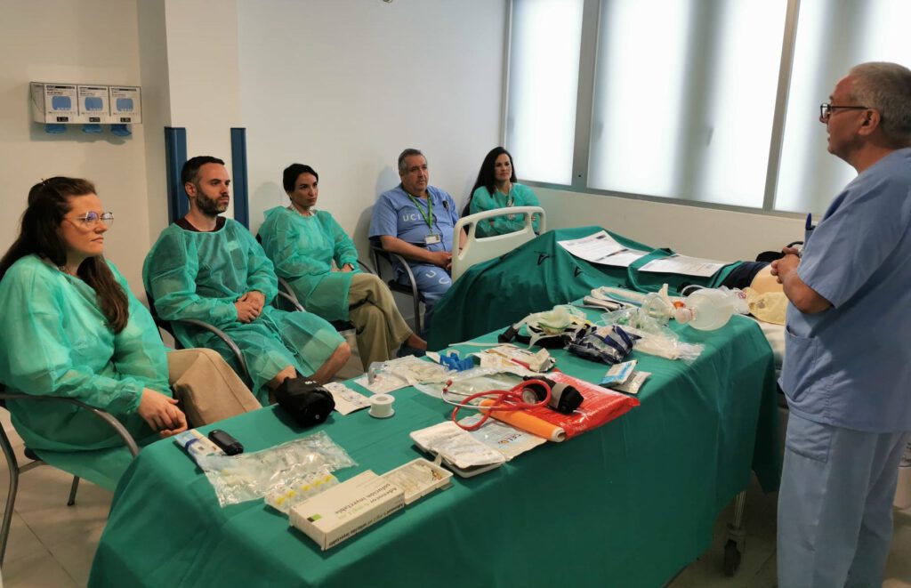 El curso se desarrolla en línea y presencialmente en las dependencias del servicio de Cuidados Intensivos del hospital. Está acreditado por la ACSA y permite que profesionales, tanto de UCI como de los Servicios de Urgencias Hospitalarias y Servicios de Emergencias Extrahospitalarias, dispongan de una puesta al día efectiva para afrontar dicha situación.