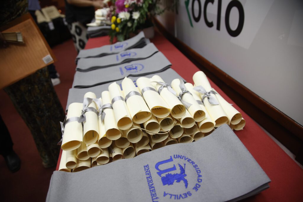 Una nueva generación de 140 enfermeras y enfermeros celebran la Graduación por la Universidad de Sevilla en el edificio de Gobierno del Hospital Virgen del Rocío. Son 80 los estudiantes universitarios de la Facultad de Enfermería, Fisioterapia y Podología (US) vinculados en sus prácticas al Hospital Universitario de Valme y otros 60 vinculados al Hospital Virgen del Rocío que culminan en esta Gala una etapa en la Educación Superior.